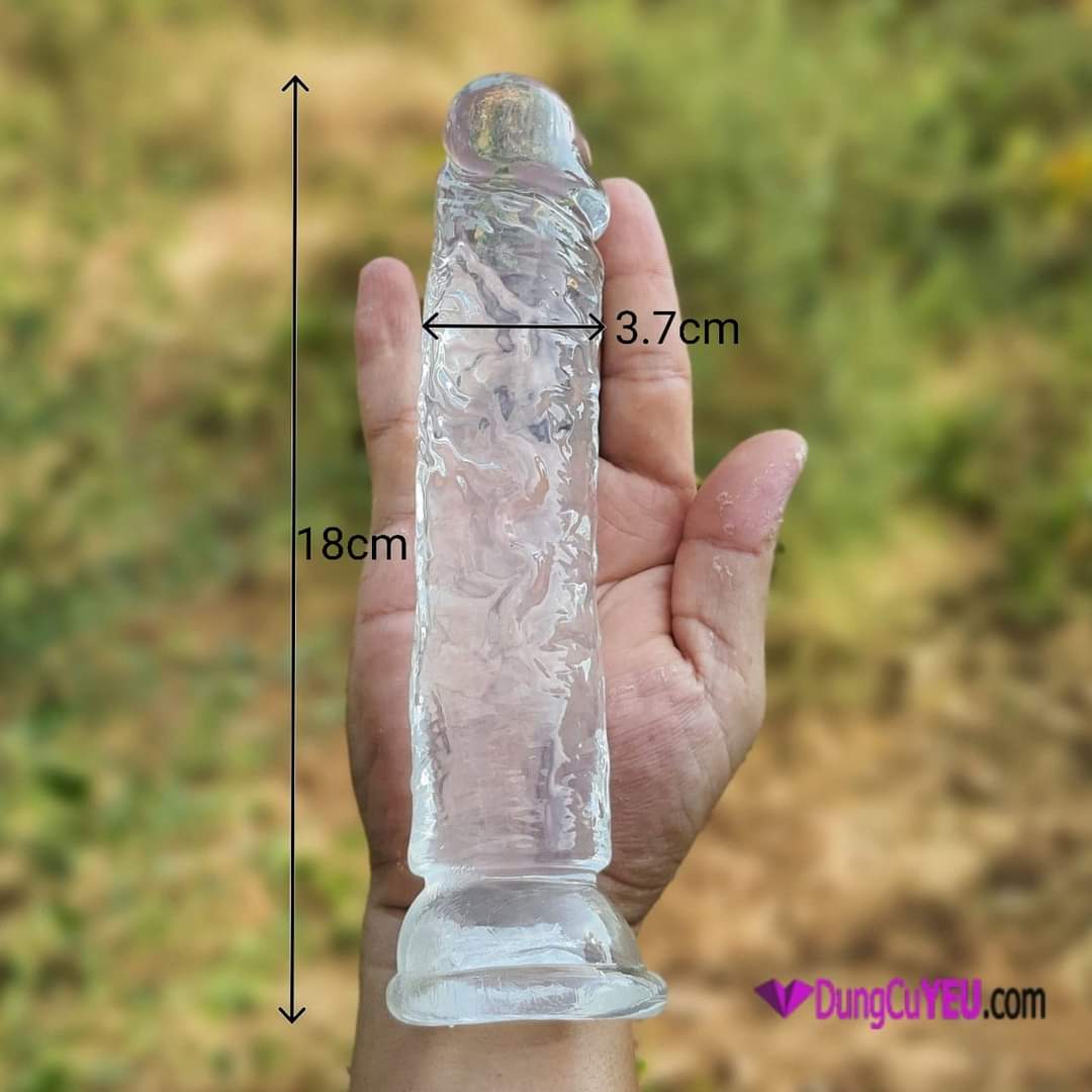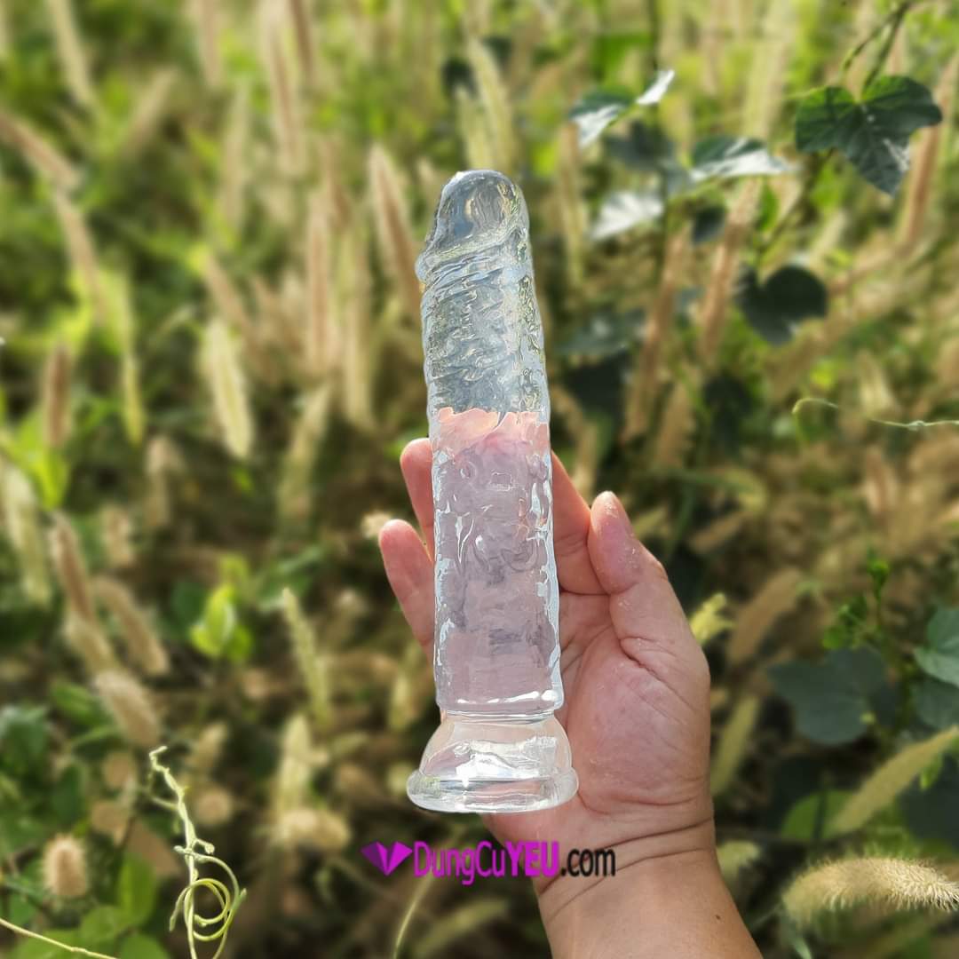 Dương vật giả trong suốt không bìu là món đồ chơi tình dục cho nữ được thiết kế giống thân dương vật nam giới, với những đường gân nổi chạy dọc tận gốc giúp tăng cọ sát kích thích cho người sử dụng. Kết thúc bằng đế hút giúp bám chặt trên bề mặt láng mịn như: gạch men, gỗ…giúp cố định sản phẩm, giúp rãnh tay khi dùng và tạo ra các tư thế để chơi dễ dàng