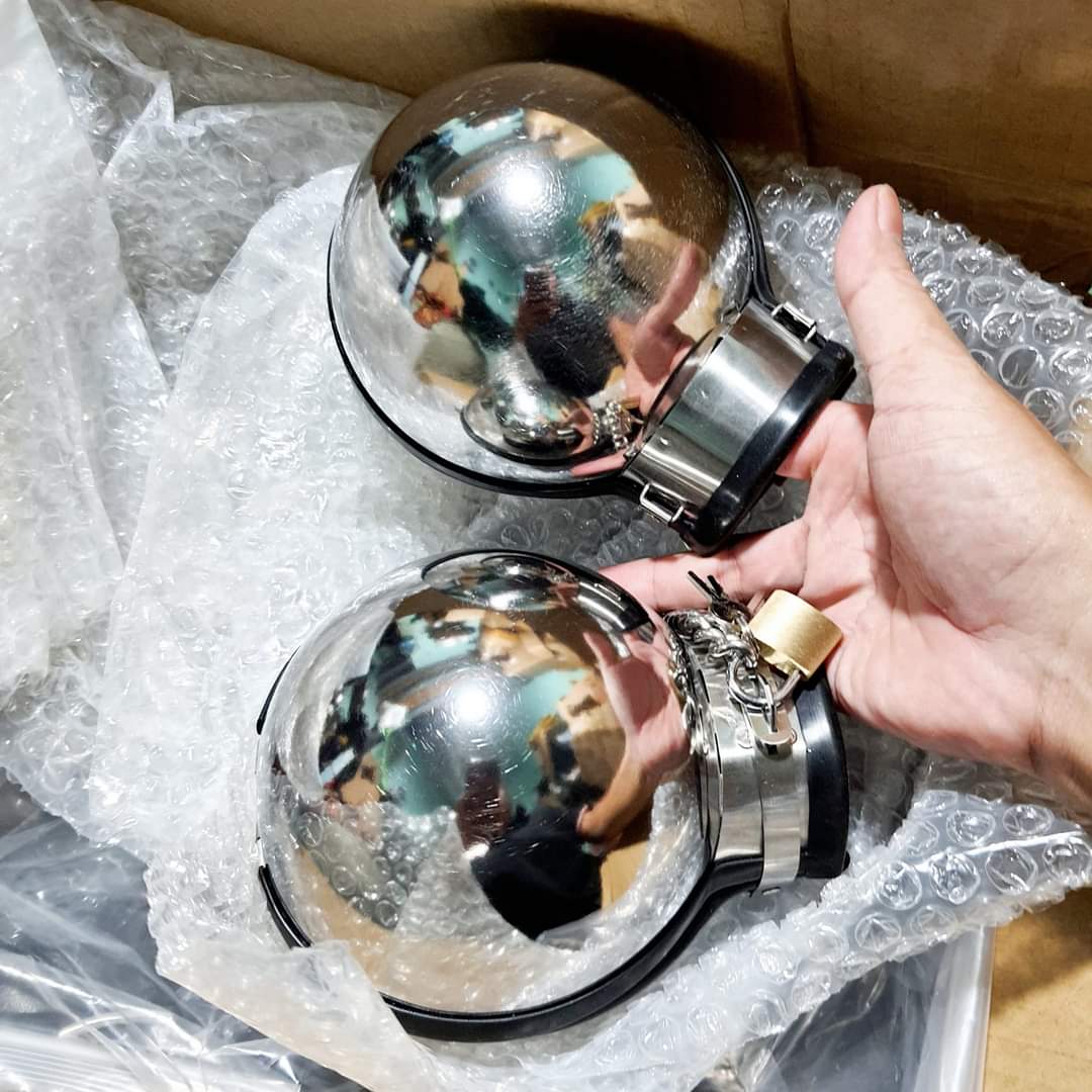 Nếu mới nhìn qua thì ắc hẳn ai cũng nghĩ đây là găng tay boxing nhưng thực chất nó chính là bộ khóa bàn tay inox. Một thiết bị giúp tra tấn slave hiệu quả mà không mang đến cảm giác khó chịu hay đau đớn