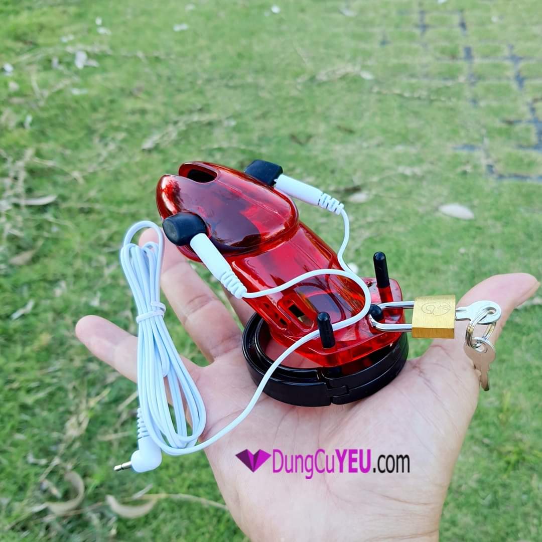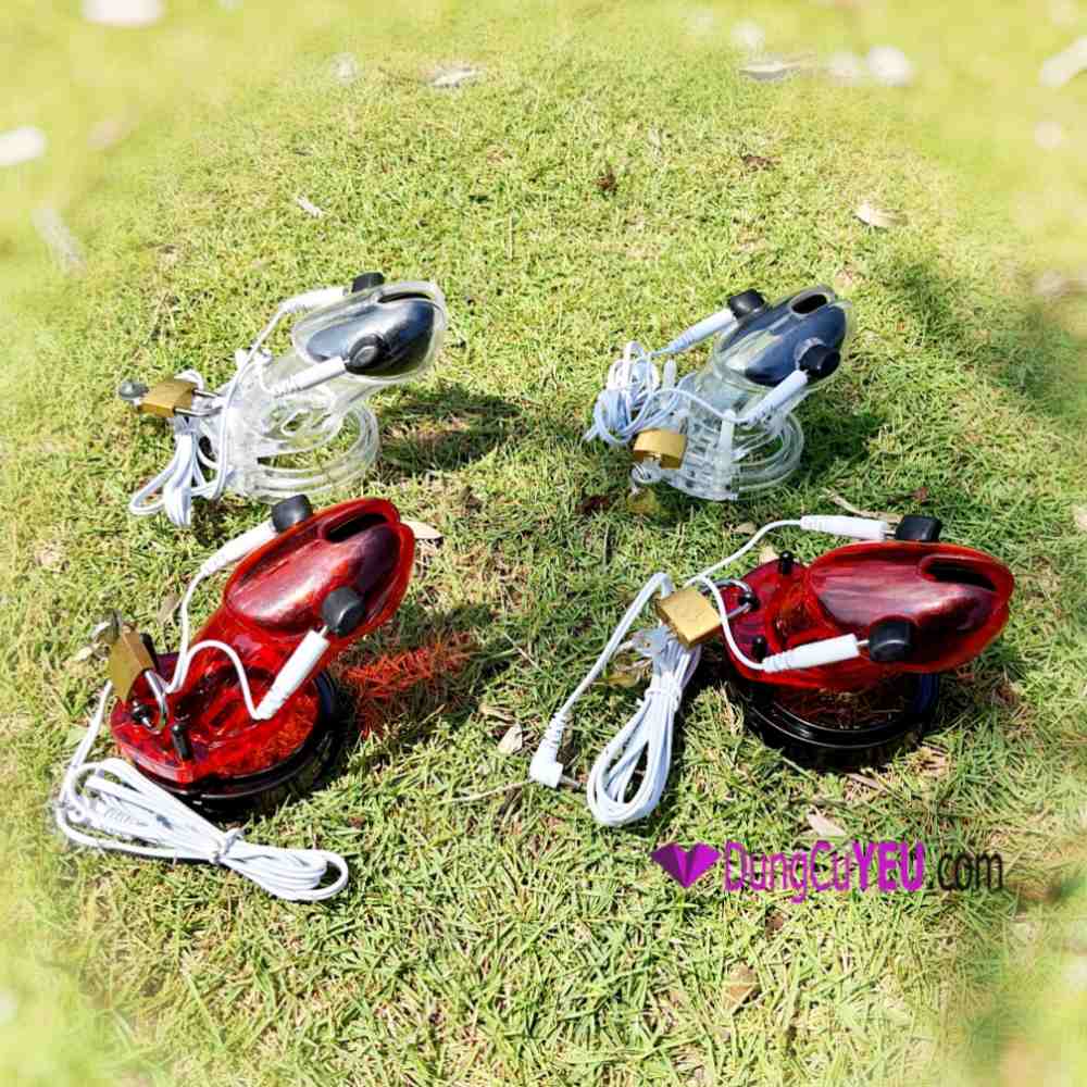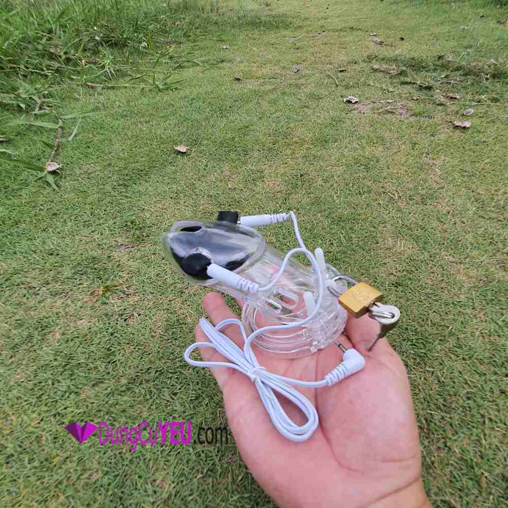 Khóa dương vật kích điện là phụ kiện hành cậu nhỏ lý tưởng cho những ai thích khổ dâm. Đây là sự kết hợp giữa khóa dương vật và việc dùng điện cực có tần số thấp để kích rung dây thần kinh ở dương vật để đưa người mang khóa đến trạng thái cực khoái và xuất tinh ngay trong khóa, đây là mẫu khóa đang hút hồn các tín đồ của trường phái đam mê estim
