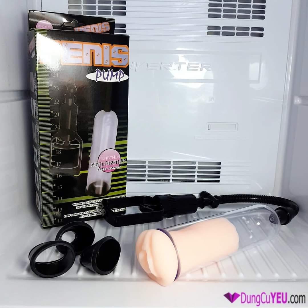 – Kéo cần bơm liên tiếp nhiều lần để hút không khí ra ngoài, từ từ đến khi đạt trạng thái căng cứng dương vật