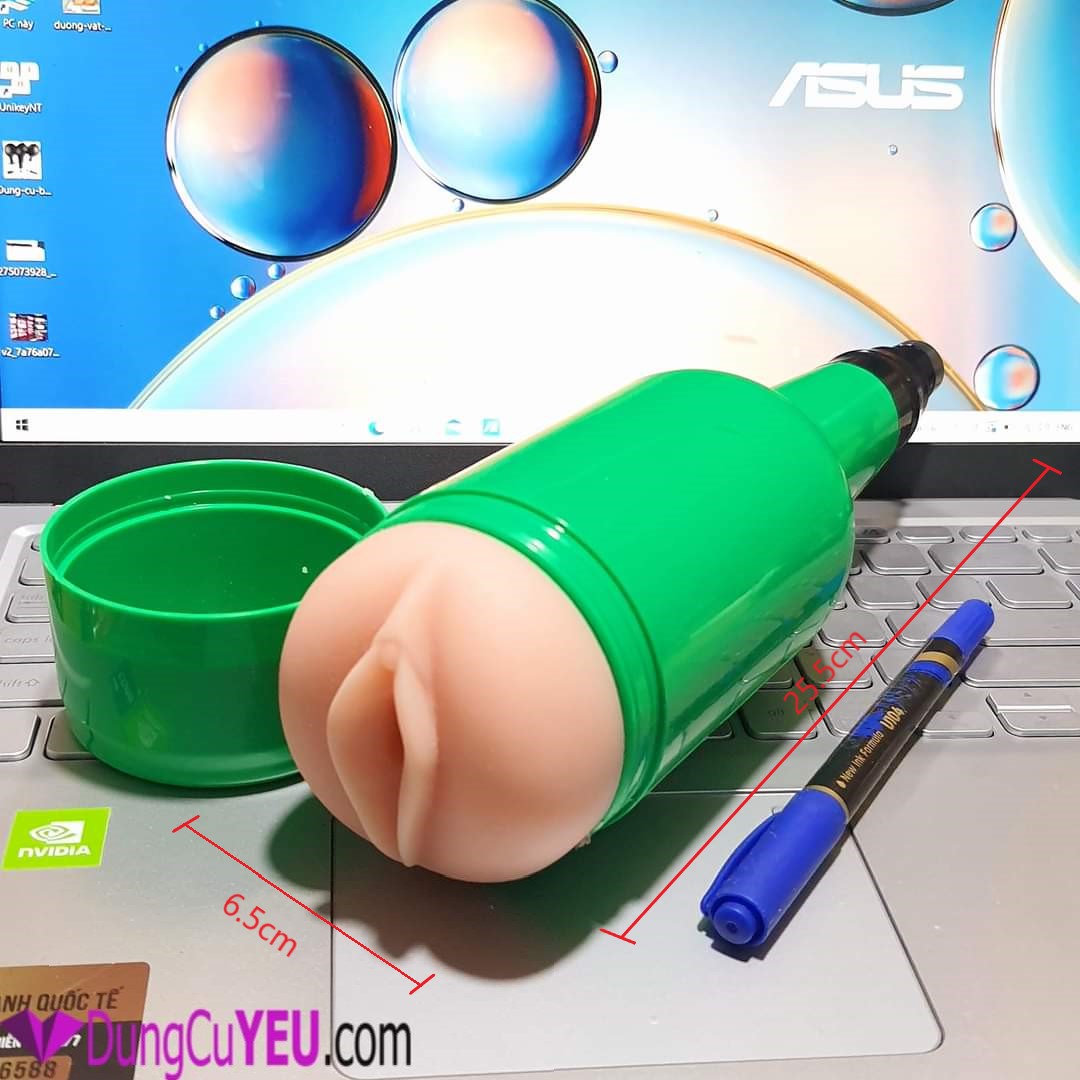 – Kích thước các đầu phụ đi kèm: dương vật: dài 20cm x 3.5cm; cốc âm đạo chai bia: 6.5cm x 25cm