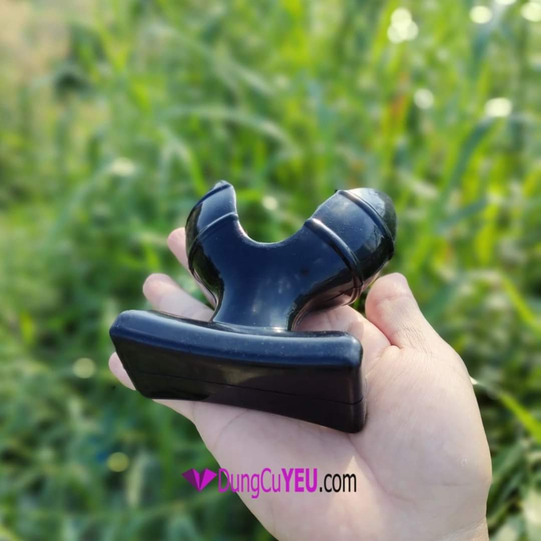 Phích hậu môn 2 nhánh được thiết kế dạng chữ V khi thả lỏng và khi chụm lại là hình bầu dục, giúp phích dễ đưa vào hậu môn và sẽ giữ chặc khi nó được lọt vào trong. Chân đế phích làm theo dạng hình chữ nhật phẳng vừa giúp phích không lọt vào sâu trong hậu môn vừa tạo được sự thoải mái khi ngồi